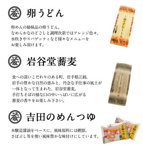 うどん 素麺 セット 食楽佳味 卵めん200g×4卵うどん200g×3岩谷堂蕎麦卵うどん200g×3つゆ40m×10 ※こちらの商品はメーカー直送商品の為、発送まで3営業日〜5営業日程かかります。